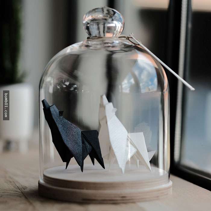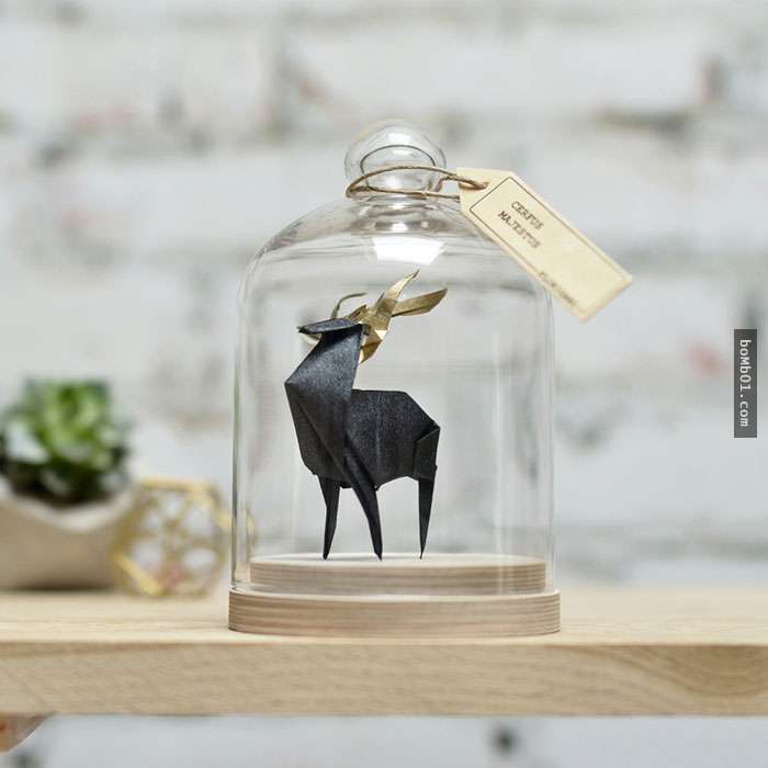 如此多的惟妙惟肖的動物,都是通過一雙巧手製作出來,變換成各種造型。在顏色的選擇上,不論是白色、金色還是黑色,都賦予獨特的傳統味道。現代藝術與傳統紙張工藝的完美結合,讓這些人類的智慧財富一代代流傳下去。如今有了這些玻璃罩,想要保存多久都不擔心了。如果你也喜歡這些摺紙藝術品,趕快分享給朋友們一起欣賞吧,真的是非常難得!