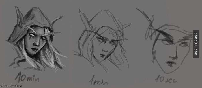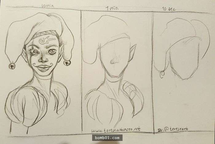 這個畫家分別用「10秒、1分鐘、10分鐘」完成插畫,他的10秒比普通人強超多的!