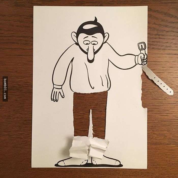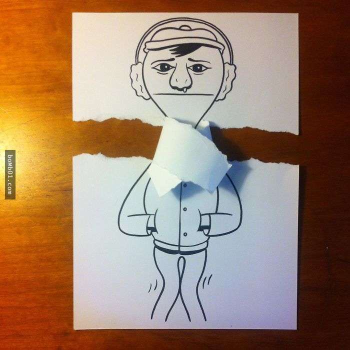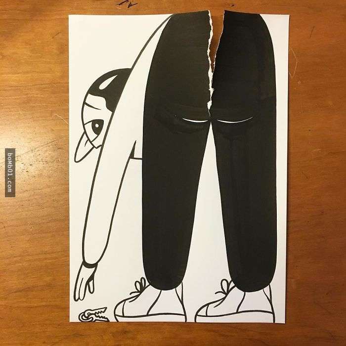 大部分藝術家都把紙張當成承載作品的工具,HuskMitNavn卻把它變成了作品的一部分。撕紙搭配線條,組合成的插畫從2D轉化為3D,效果非常棒。藝術果然需要創造力,將白紙玩出這樣的花樣,這位插畫家太厲害了。
