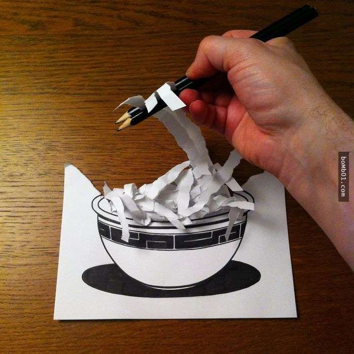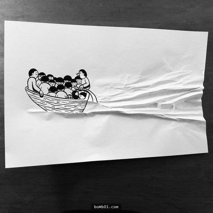 2017年01月05日如何讓2D的作品展現出3D的效果,對藝術家來說是巨大的考驗。丹麥插畫家HuskMitNavn就找出了答案。他在普通的白紙上作畫,然後將紙張彎曲、摺疊、揉搓,巧妙將它們轉化為3D作品。這種方法看似簡單,想要實現卻要花費一些心思。