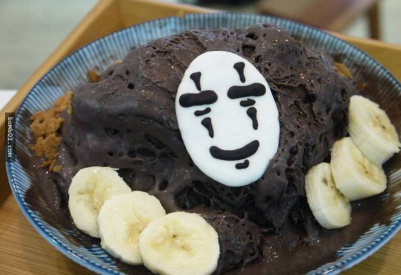 既然來到冬季,那就一定要吃冰了!(咦?)一隅冰屋把無臉男化為美味可口又沁涼的冰點,裡面是巧克力口味的冰配搭上香蕉,還有又在賣萌耍無辜的無臉男造型餅乾,看起來超吸睛。