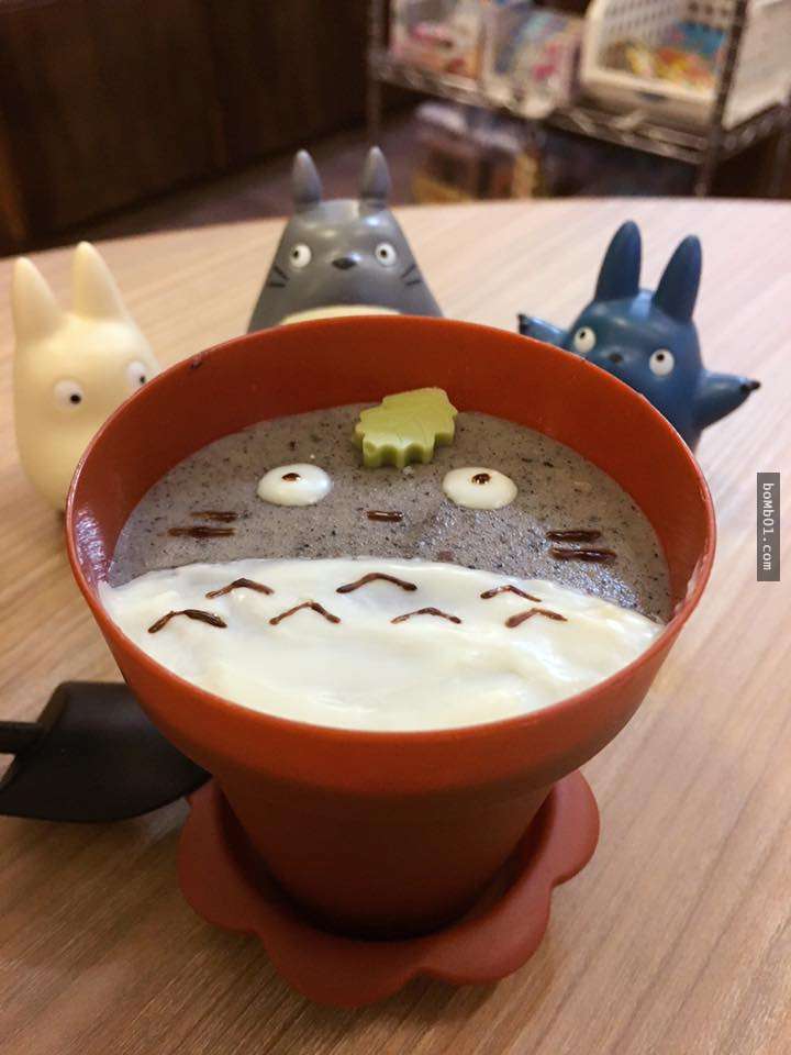 ▼這麼多隻「盆栽龍貓」和「盆栽無臉男」集合在一起,而且還要配上小鏟子來吃,整個畫面根本超犯規!(內心小劇場已翻騰…)