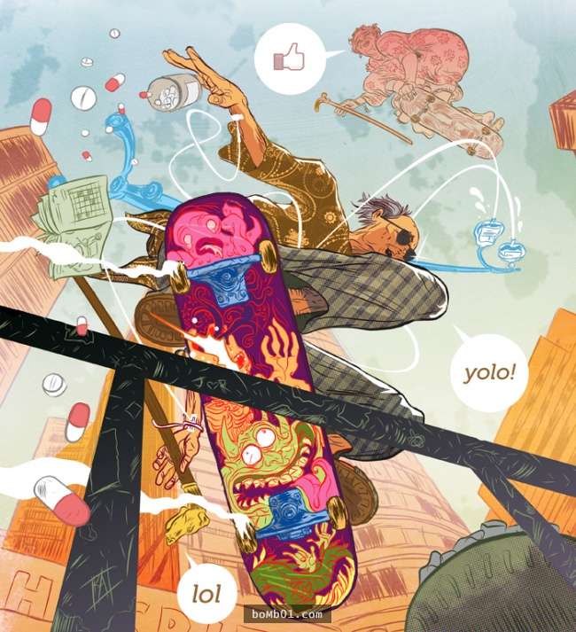 這都是Rafael生命中非常重要的作品,為了適應iPad瀏覽,讓視覺效果更棒,他特別處理了一些插畫的細節。這些插畫看似有趣,卻隱藏著黑暗的主題,讓人忍不住陷入思考。那些看起來正常的事,是否真的如我們想像中一樣理所當然?社會的病態現象什麼時候才能真正引起重視?