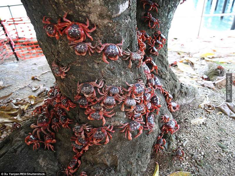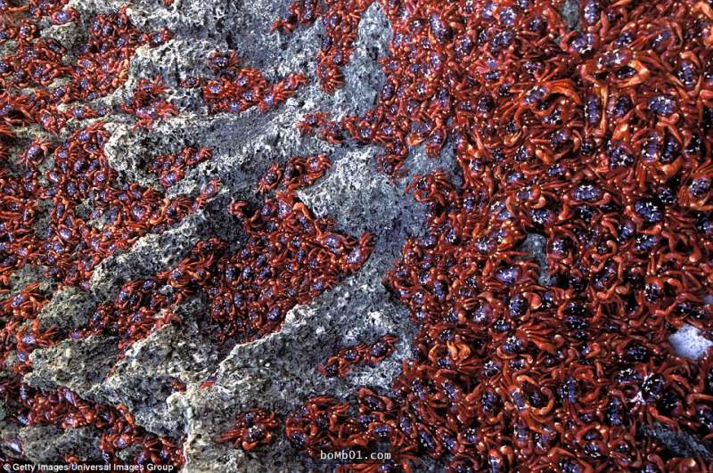 2017年01月07日世界之大,無奇不有。澳洲聖誕島上就有一種特別的紅蟹,每年的11月,是這些螃蟹交配遷徙的季節。因為紅蟹數量太多,看起來就像可怕的紅潮,島上居民無奈之下只能放置路障,不過這也沒什麼用,螃蟹大軍還是照爬不誤。