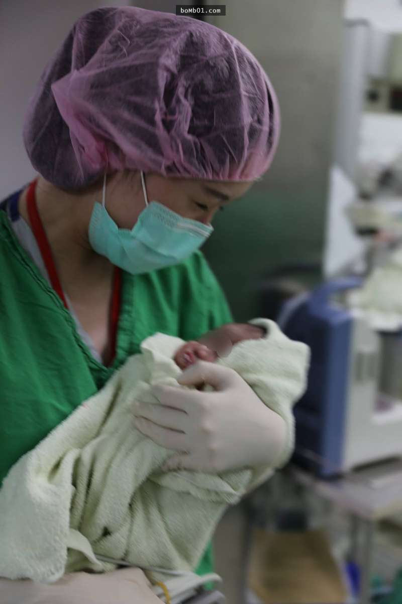 ▼手術當天,醫師先確定了胎盤侵襲的位置,隨後來到病房,只見孕婦的先生在旁邊嘆氣,孕婦則用被蒙著頭一直哭,無法講話。施景中醫師說,「我曾經發願要幫這些因生產而大出血的孕婦。沒有錢,我們更應該幫。」他將孕婦轉至有最多人力的手術室,而且還有4名資深麻醉醫師自願來幫忙。孕婦的剖腹手術,就在台大團隊的合力之下,短短40分鐘內就完成,出血量甚至控制的比一般剖腹產都來得少!