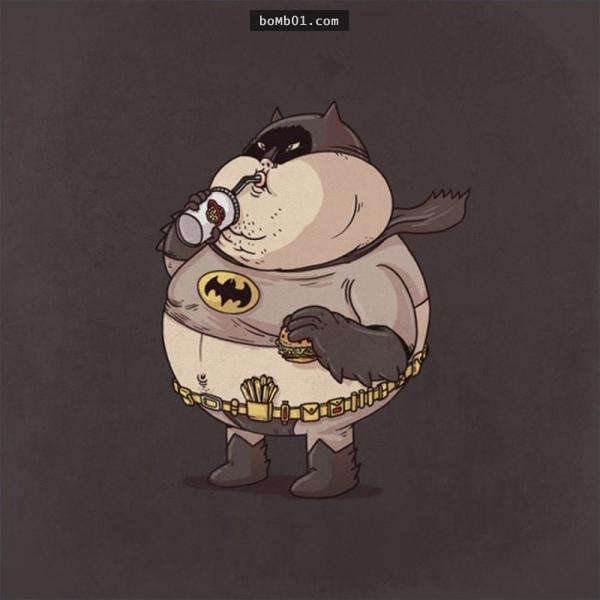 ▼10. 手上拿著汽水和漢堡,腰間還插著薯條,看來那位鮮肉等級身材的蝙蝠俠再也回不去了。