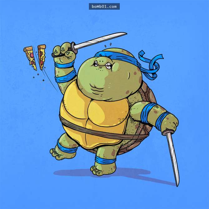 ▼1. 如果在現實生活中,忍者龜還是這麼喜歡吃披薩的話,那他就會胖成這個樣子了!(抖)