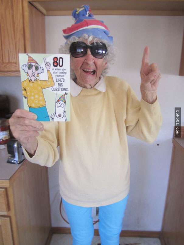 ▼6. 奶奶穿的跟孩子送的生日卡片一模一樣,這肯定是最強大的Cosplay了!(笑)