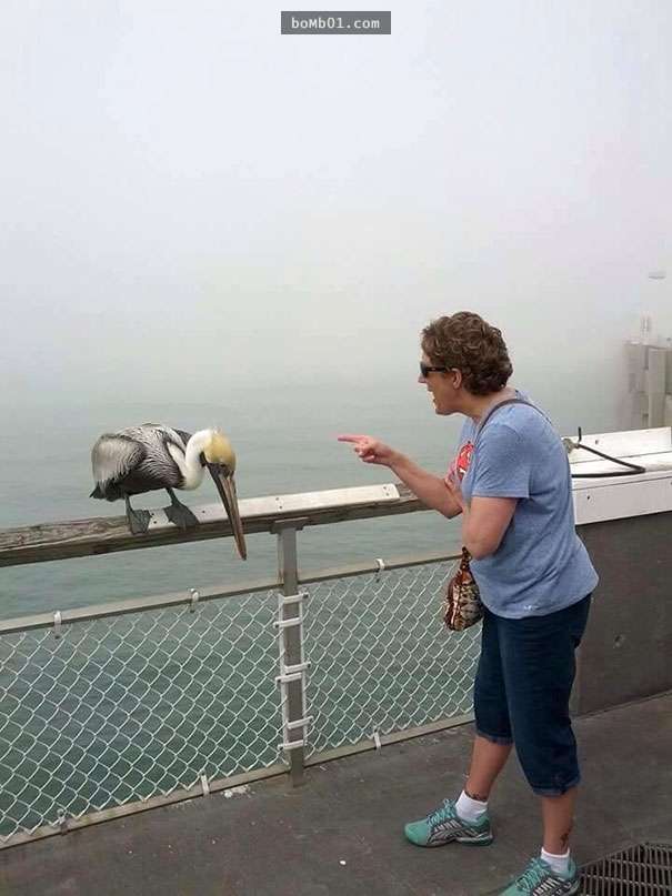 ▼15. 奶奶被鵜鶘咬了一口,所以她開始反過來對牠訓話了。(鵜鶘好像也知道自己惹錯人了XD)