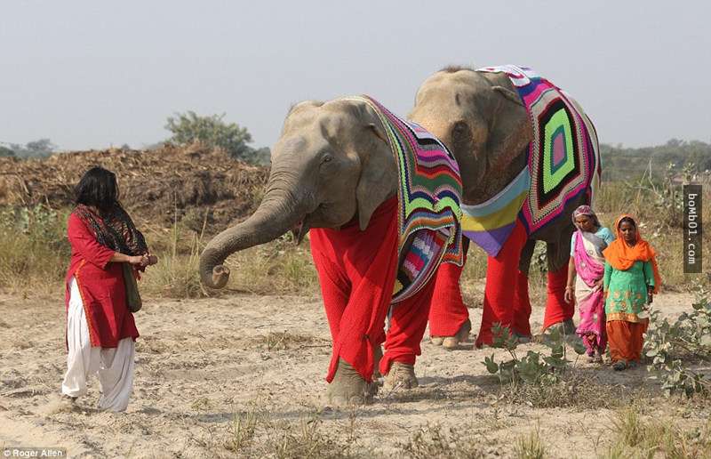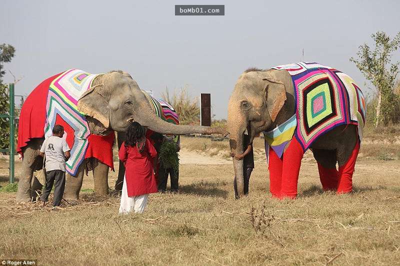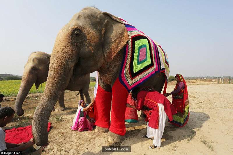 ▼手工編織毛衣需要花費幾個月,但這對那些身體不好的大象來說至關重要。