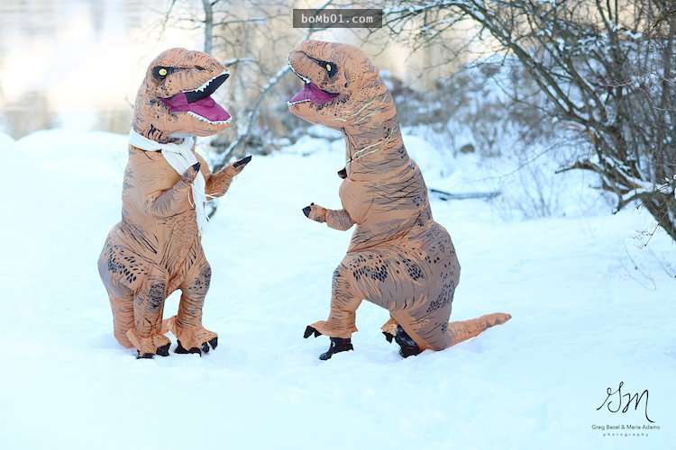 沒想到暴龍這種武力值超高的動物拍起照片來這麼可愛,情侶照用這樣的形式拍攝,感覺也很棒!