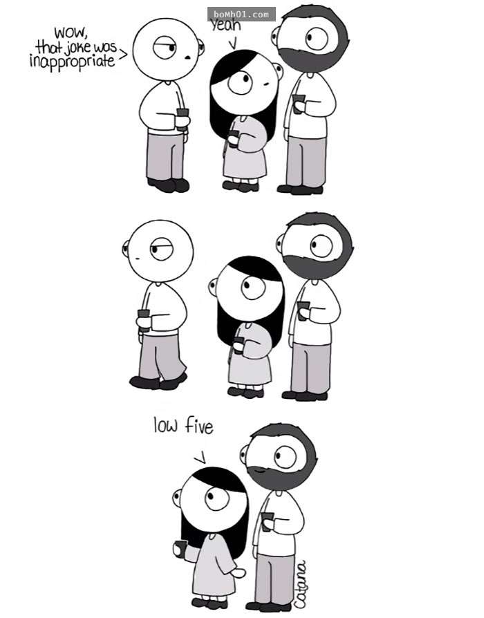 ▼11.路人:「這個笑話很不得體。」女友:「來偷偷擊掌」