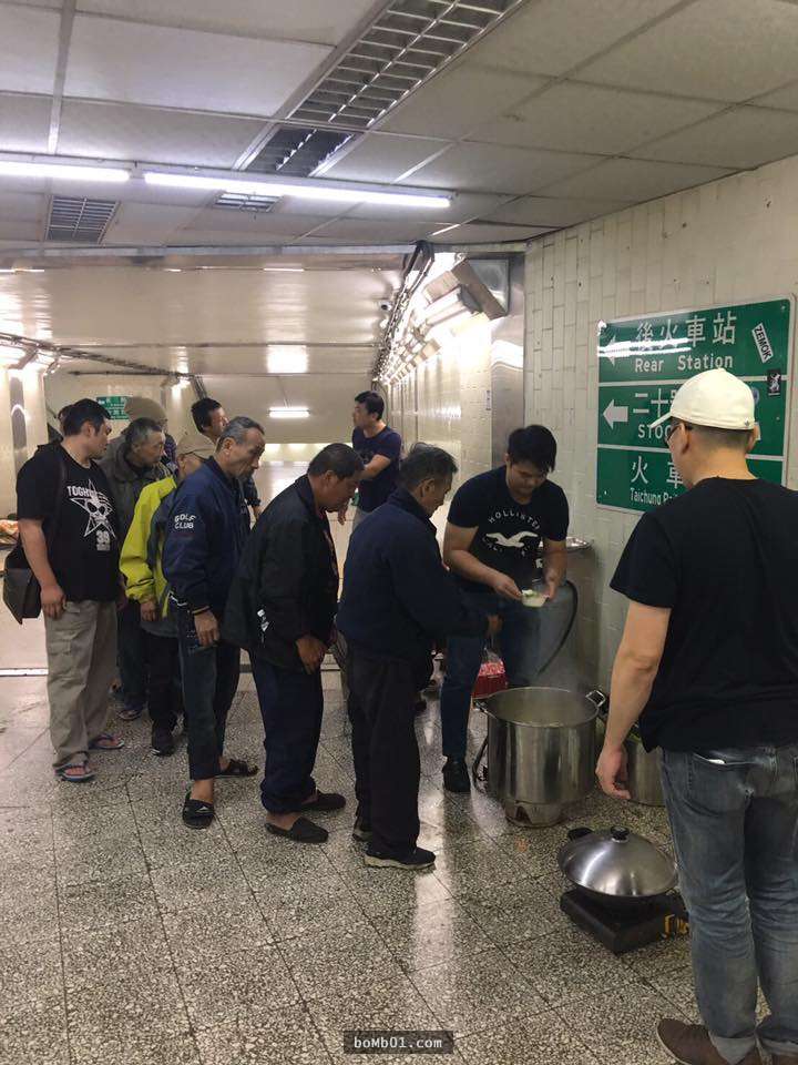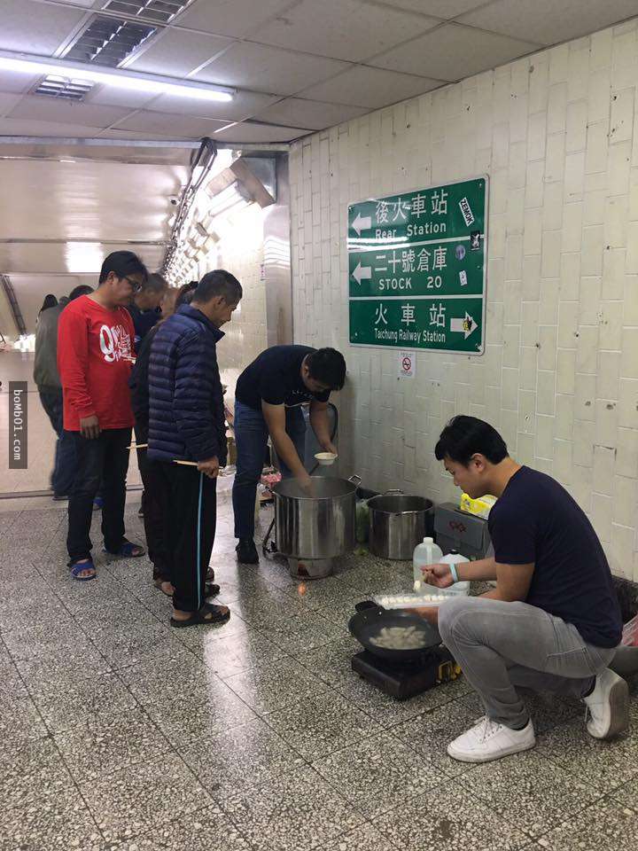 ▼前日有網友在臉書社團「爆料公社」上分享了他在台中火車站附近地下道看到的暖心畫面,一群好心人犧牲自己與家人吃年夜飯的時間,扛著瓦斯桶、鍋爐、食材等,自願幫街友煮年夜飯。