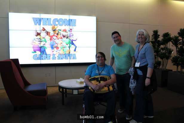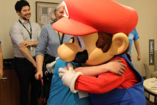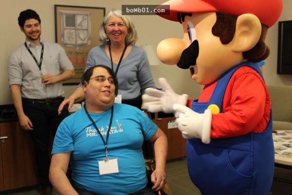 ▼美國任天堂官方立刻行動,安排Gabe與媽媽前往總部參訪,他們不僅讓Gabe玩到了新遊戲,還派出人氣超高的馬力歐來迎接這位特別的客人。