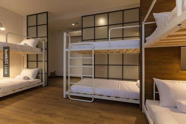 ▼房間共分為雙人、四人套房、4以及8人上下舖房型,每個上下舖床位階提供感應卡置物櫃、獨立國際插座與閱讀燈,一晚520元起。最特別的是,在雙人與四人上下舖房型中提供電視設備,同時附有專屬耳機,讓旅客窩在自己的床內也不無聊。
