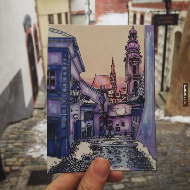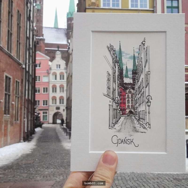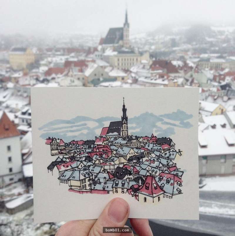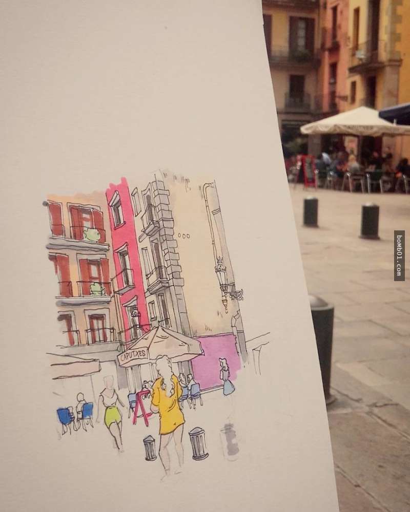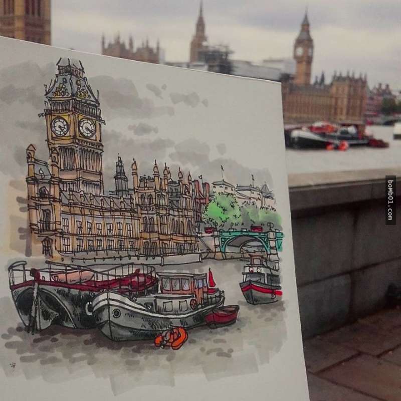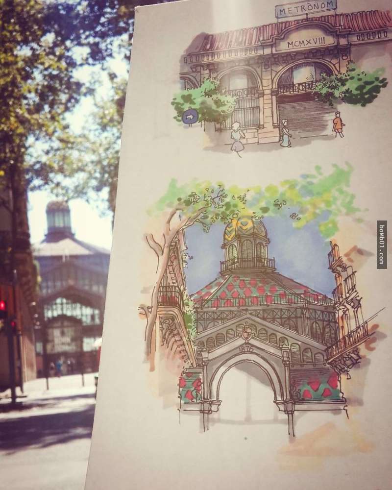 他在背包旅行時不像別人只用相機記錄,反而用畫筆畫出「讓人看到入迷的景點圖」!
