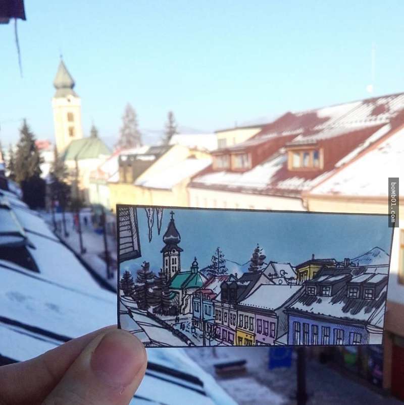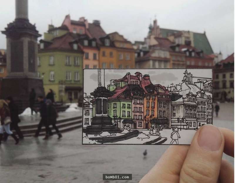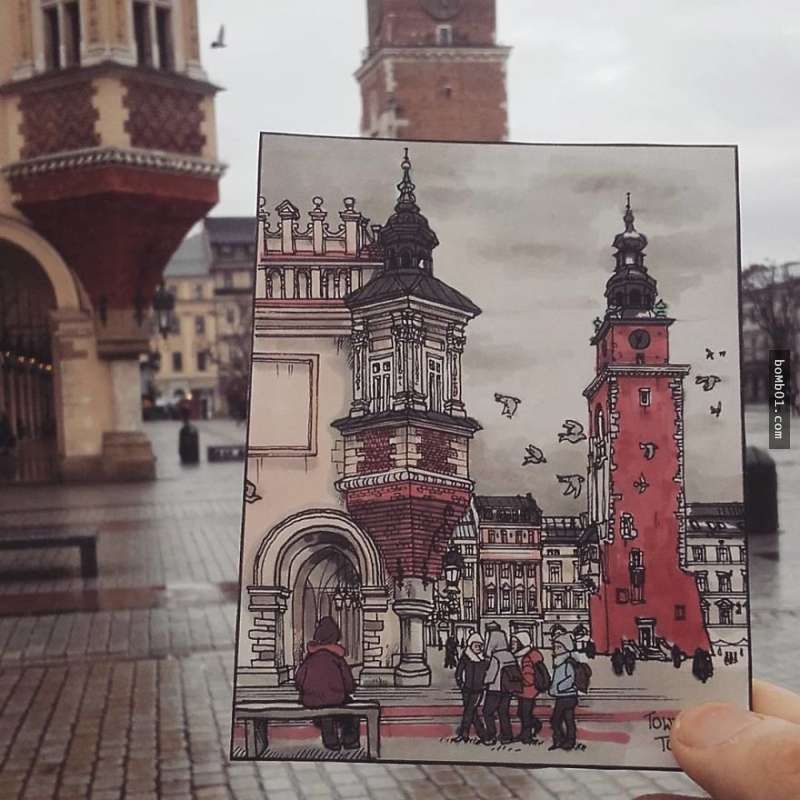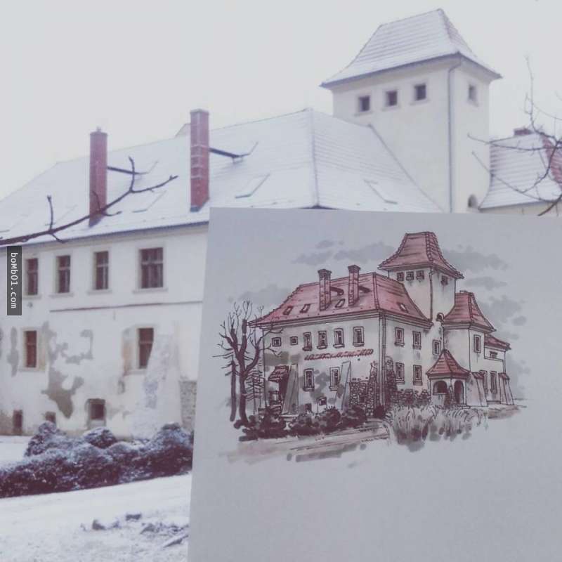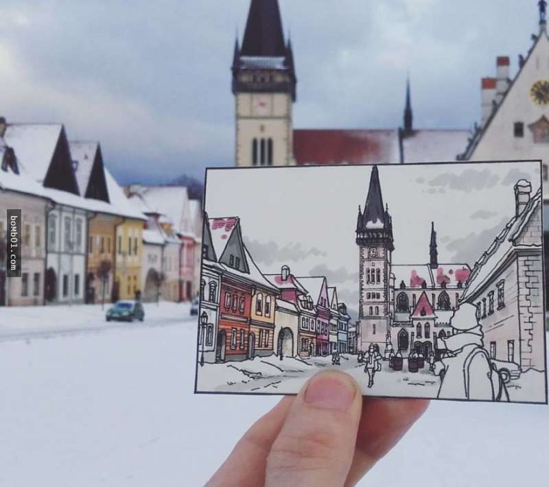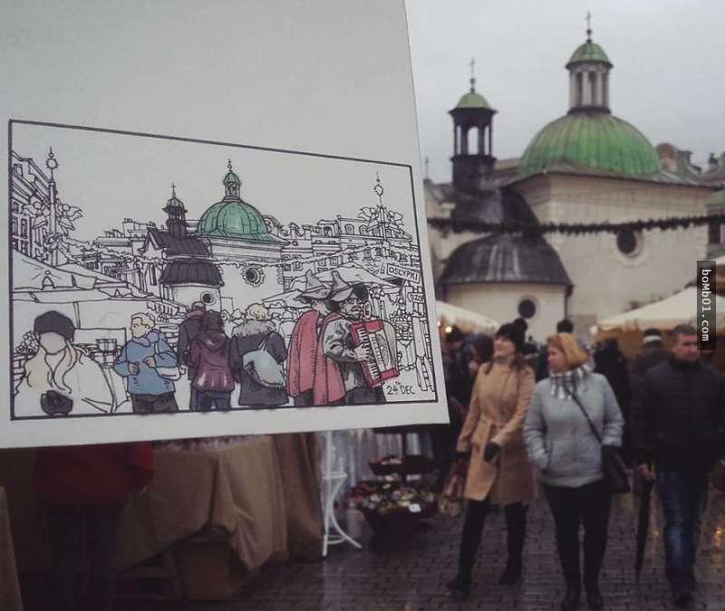 他在背包旅行時不像別人只用相機記錄,反而用畫筆畫出「讓人看到入迷的景點圖」!