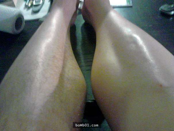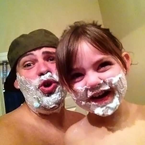 ▼他教女兒怎麼刮腿毛,還拿自己的腿做了實驗。