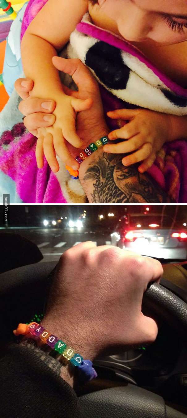 ▼2年前女兒給他製作了這條手鍊,他一直戴著沒有摘下來。