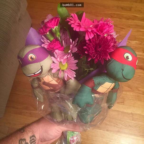 ▼爸爸給女兒送花,讓女兒知道男生怎樣對待心愛的女士。
