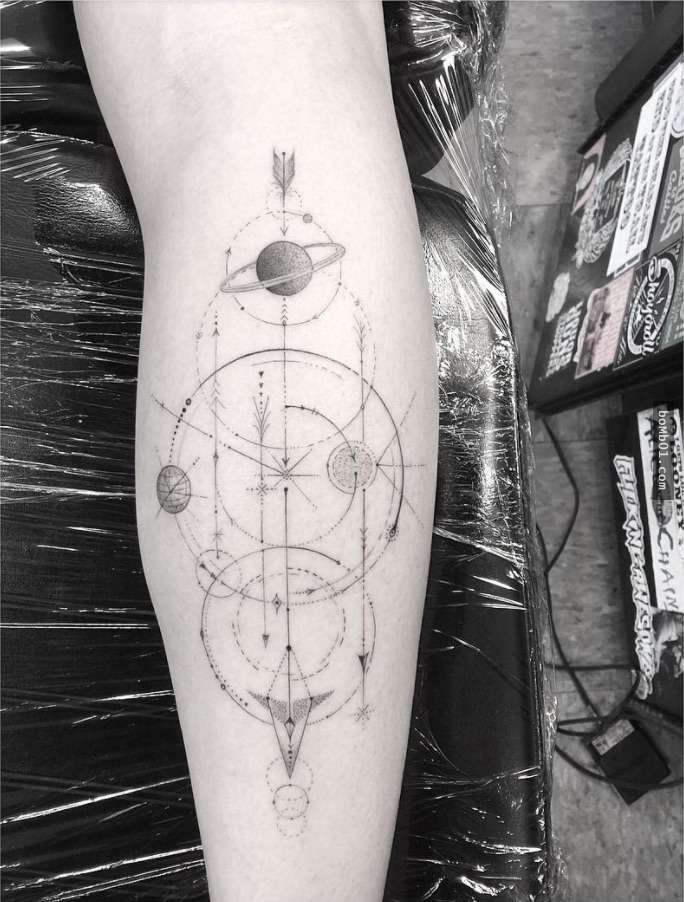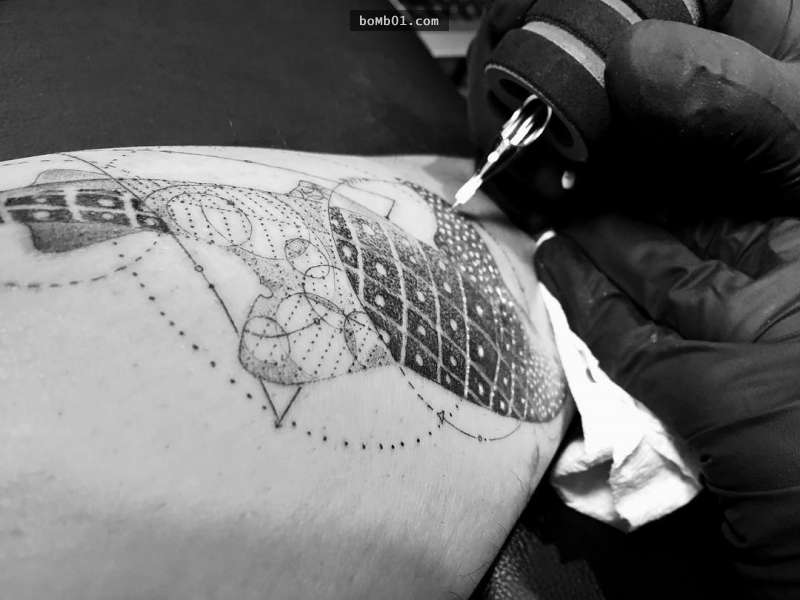 ▼他最擅長的就是數學、幾何、線條等極簡風刺青。