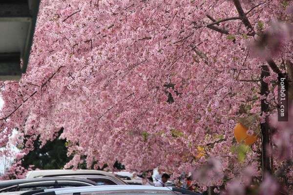 ▼桃園拉拉山:它位於桃園拉拉山神木路(桃116線),中巴陵教會附近。粉色的櫻花隧道美不勝收,簡直就是電影中才有的畫面。花期大約在2月初到中旬。