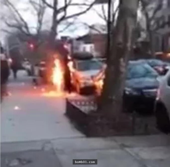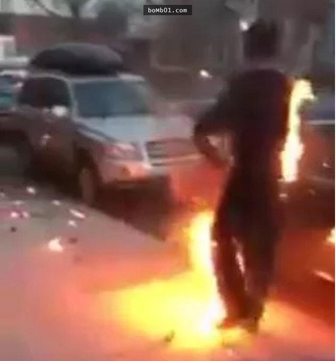 ▼Ziearre立刻下車過去查看,短短幾秒鐘的時間,那名男子身上的小火苗已經變成火球。