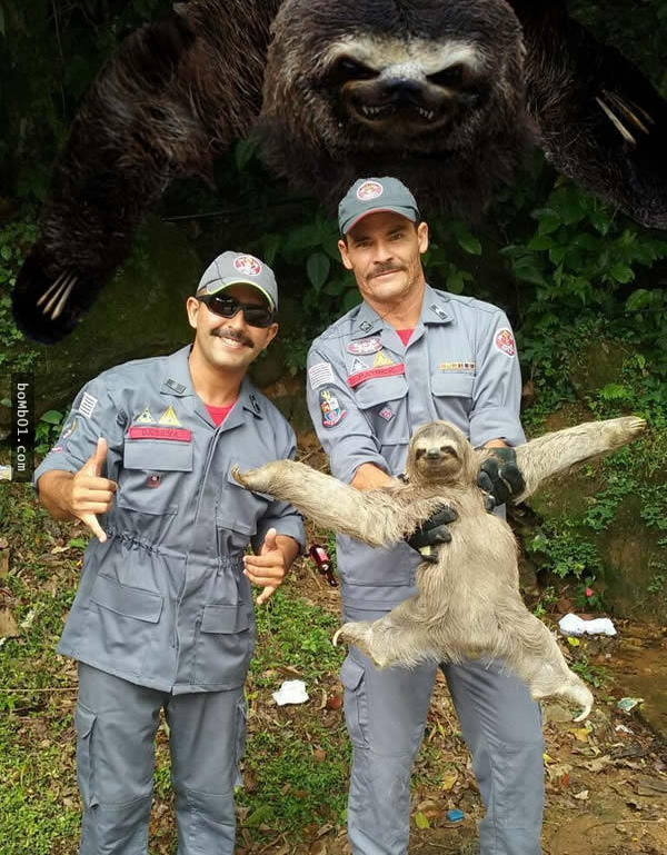 這張「樹懶獲救」照片一上傳就引出各路PS大神,第一張真的笑死人不償命啊!