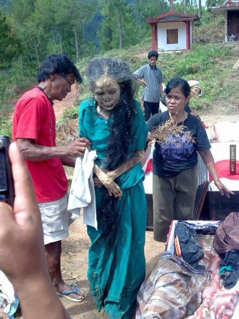 ▼5.印度殭屍:印尼托拉亞地區有特別的習俗,每年都會將過世的親友挖出來,給他們整理遺容。