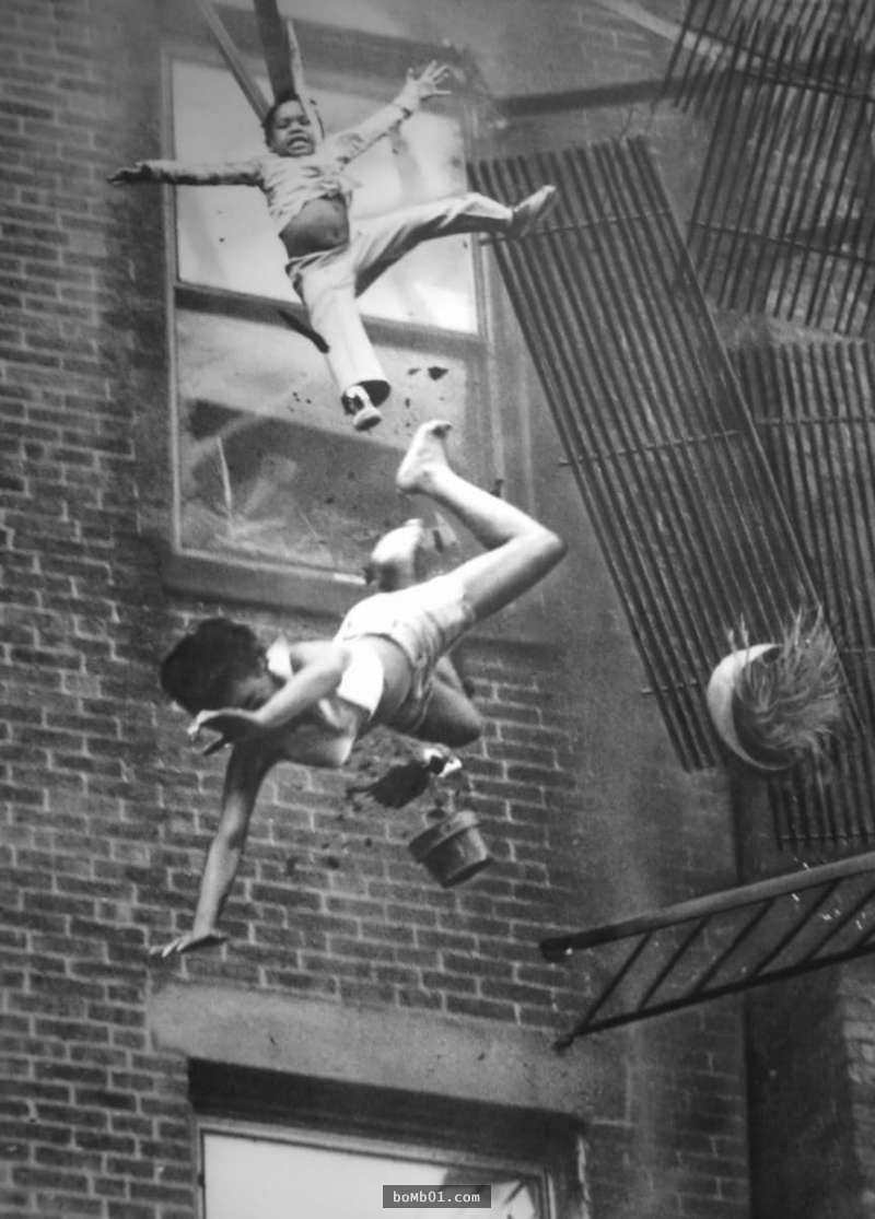 ▼4.起火後從房屋掉下來的人:當時波士頓一處建築物起火,消防員抵達現場,準備用雲梯拯救困在頂樓的人,沒想到雲梯搭上去後本就脆弱的建築直接崩潰。上面的兩個女孩直接掉下來,首先掉下來的19歲女孩身受重傷,被送到醫院後醫治無效,上面的是她的教女,她幸運存活了下來。