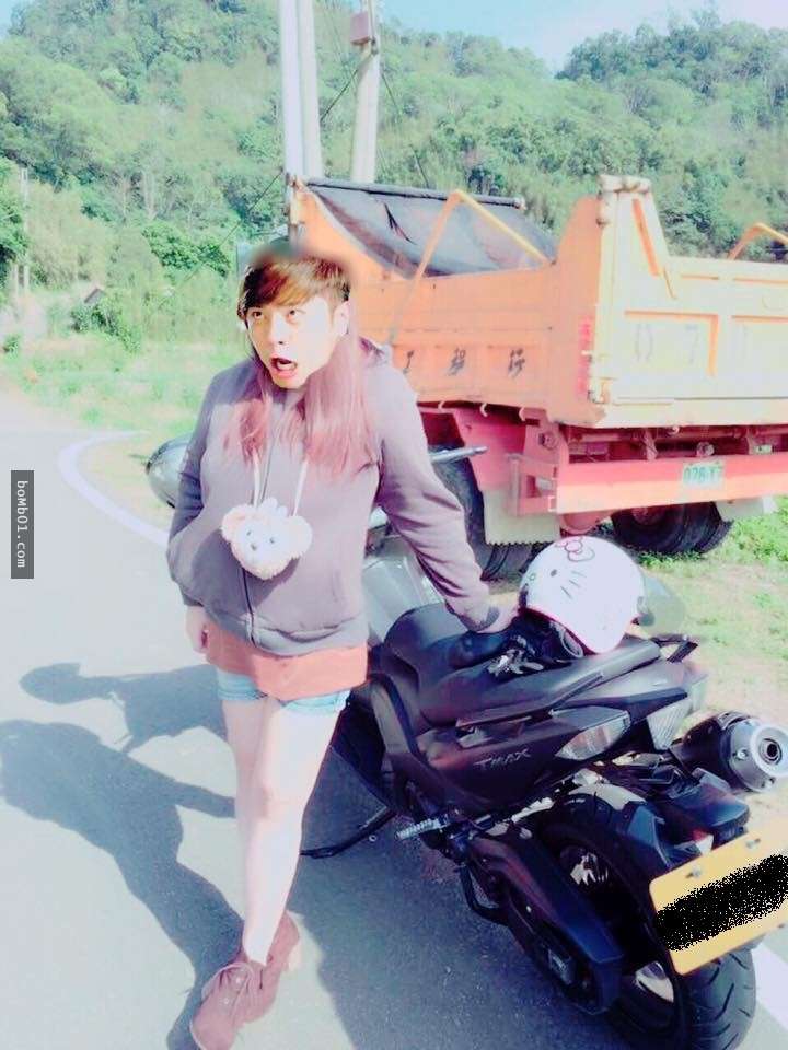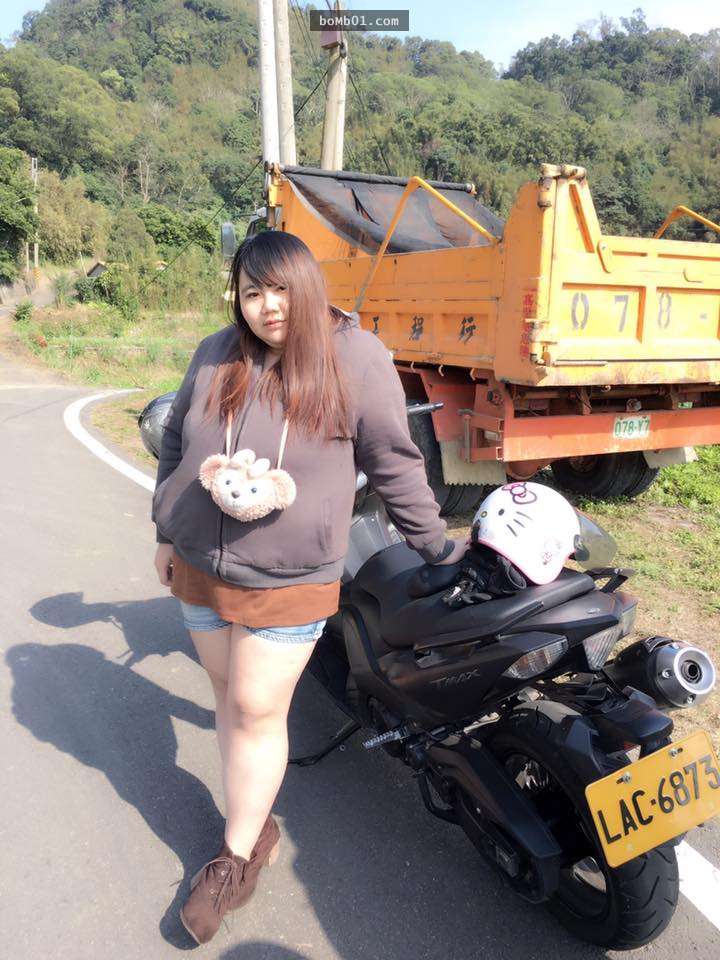 ▼這是原Po附上的原圖,只見身形豐滿的她站在一台機車旁,希望有神人網友可以在她身邊P上自己的偶像羅志祥。
