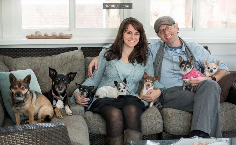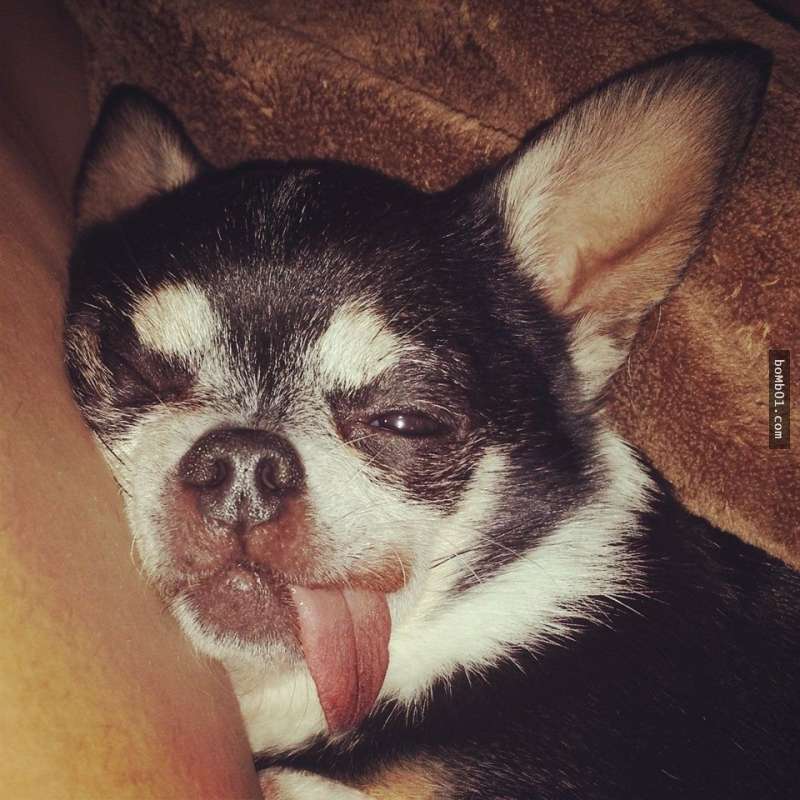 ▼Heather帶著吉娃娃回家後,將這隻舌頭總是露在外面的狗狗介紹給了丈夫。這隻原本已經病重的狗狗在那天受到了兩人無微不至的關愛,到了隔天吉娃娃依然活得好好的。