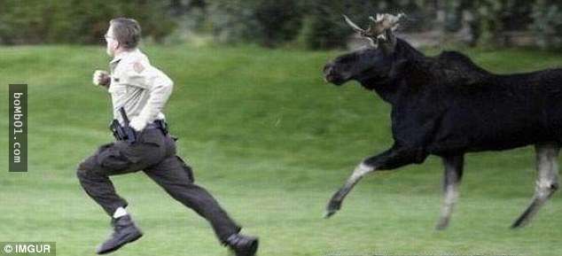 ▼麋鹿發起怒來,就連護林員都要逃跑。