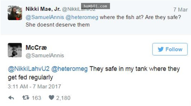 ▼McCrae連忙安撫網友,表示金魚自己在養,也有規律餵食,生活得很好。