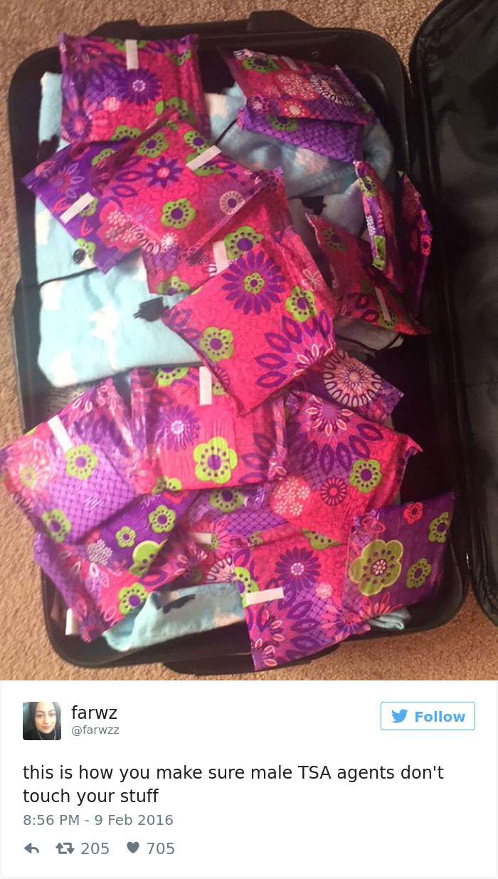 ▼7.「這就是你確保男性海關人員不亂碰你的東西的方式。」