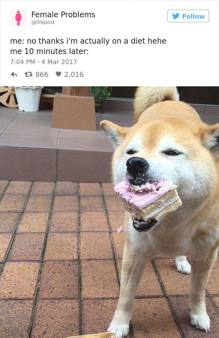 ▼10.「我:不用了,謝謝,我現在正在減肥。10分鐘後…(狂吃)」