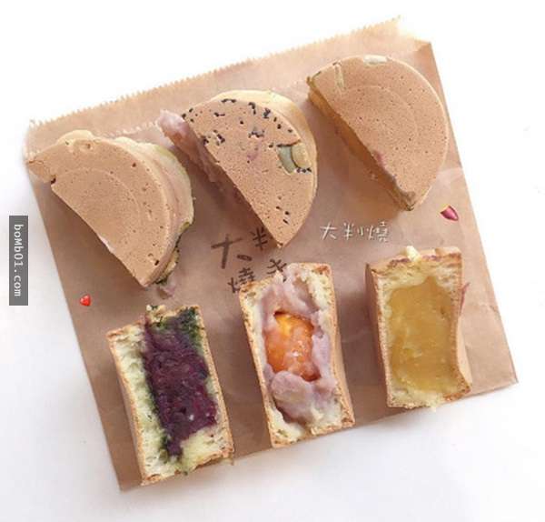 台中爆漿紅豆餅用14種口味抓住客人的心,其中的「芋泥蛋黃」更是吃過一次就會拼命回訪!