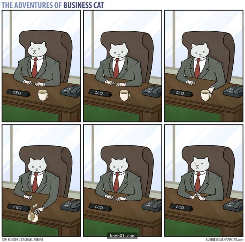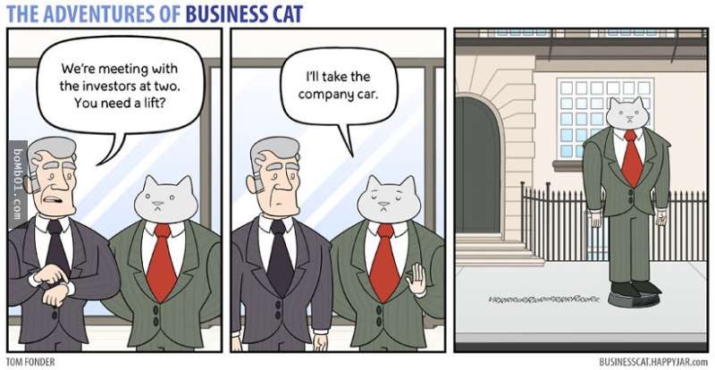 ▼6.大老闆:「我們在兩點要跟投資人見面,需要我載你一程嗎?」貓老闆:「不用,我會搭公司用車。」