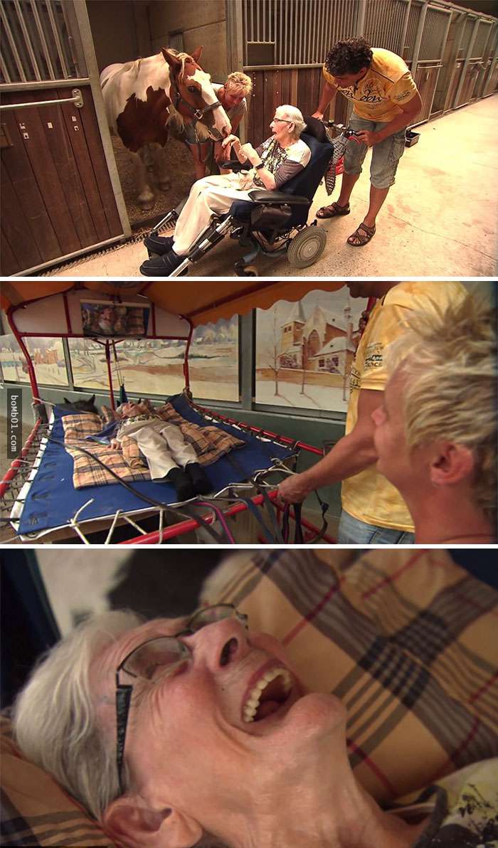 ▼16. 87歲的帕金森氏病患臨終願望就是能夠騎一次馬,而夢想完成的那一刻她露出了最棒的笑容!