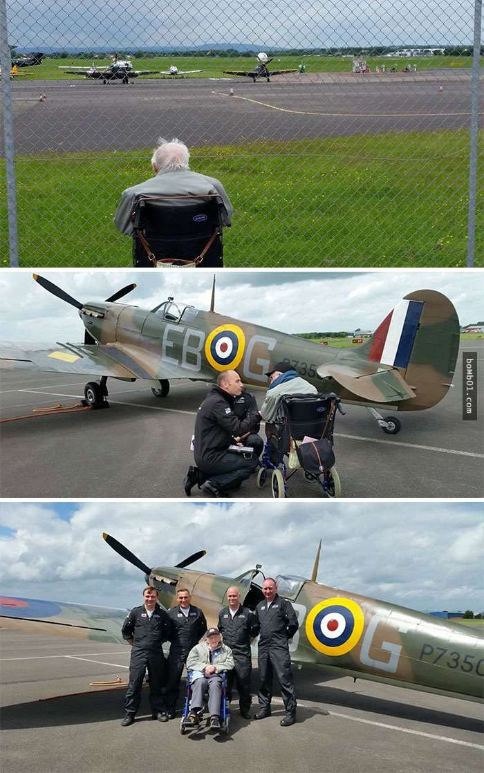 ▼18. 二戰技師希望能再見到當初的戰機一眼,當飛行員看到他的身影後,便邀請他一同團聚。