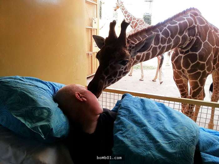 ▼7. 54歲的癌症病患Mario在鹿特丹動物園跟長頸鹿告別,多年來,他一直負責清理長頸鹿的籠子。