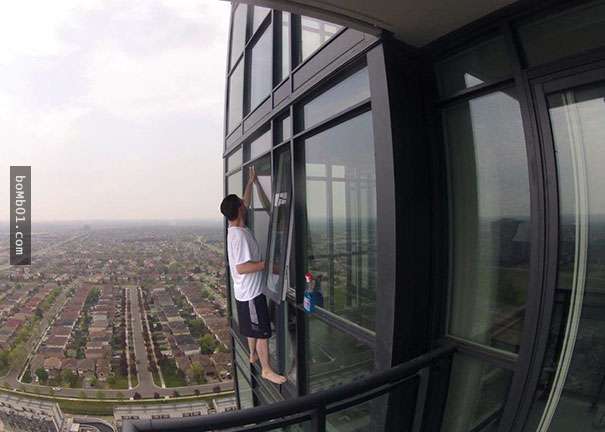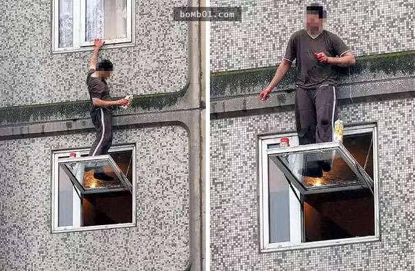 ▼只看就覺得心驚膽戰,他竟然真的做了。