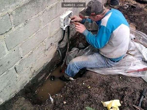▼作為一個電工,學習的第一課就應該是如何防止觸電,看來他逃課了。