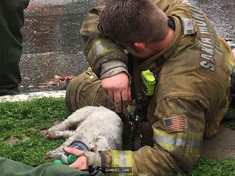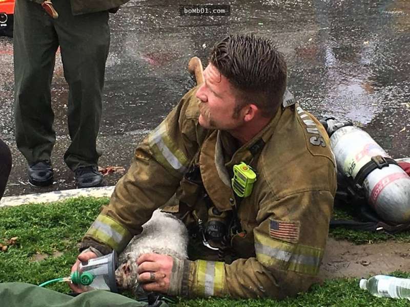 ▼因為吸入了大量濃煙,Marley已經失去呼吸,但消防員Andrew Klein卻沒有放棄。