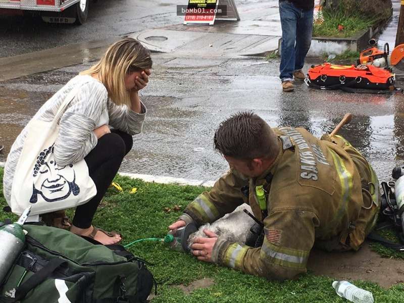 超帥消防員救出失去呼吸的狗狗後不打算放棄牠,當場就跪在地上一直幫牠做心肺復甦術 !