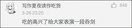 ▼還有人開玩笑說:「吃的高興了,給大家表演一段吞劍」。