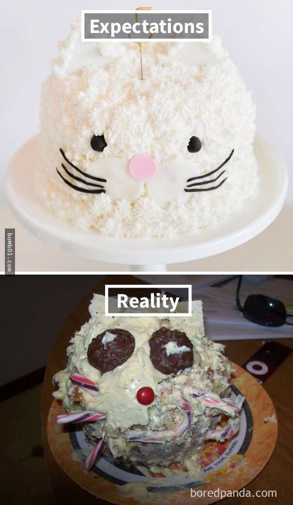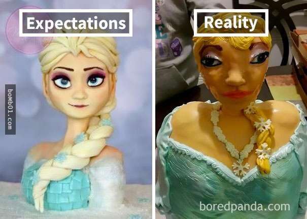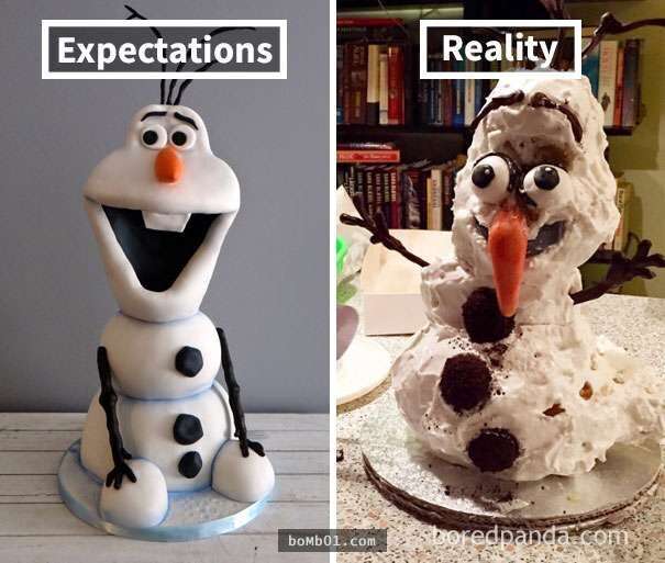 20張「大膽嘗試DIY做蛋糕」的現實VS理想對比圖,艾莎公主崩壞的模樣超恐怖!