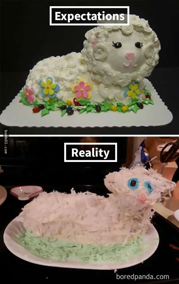 ▼理想與現實的差距到底有多大,這些做蛋糕的人總算知道了。