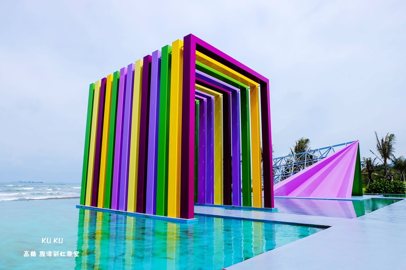 ▼3.旗津彩虹教堂:它位於高雄市旗津區旗津三路990號。陽光普照的時候來這裡拍攝,照片效果不輸熱情的海島國家,在這裡舉辦婚禮也很浪漫。