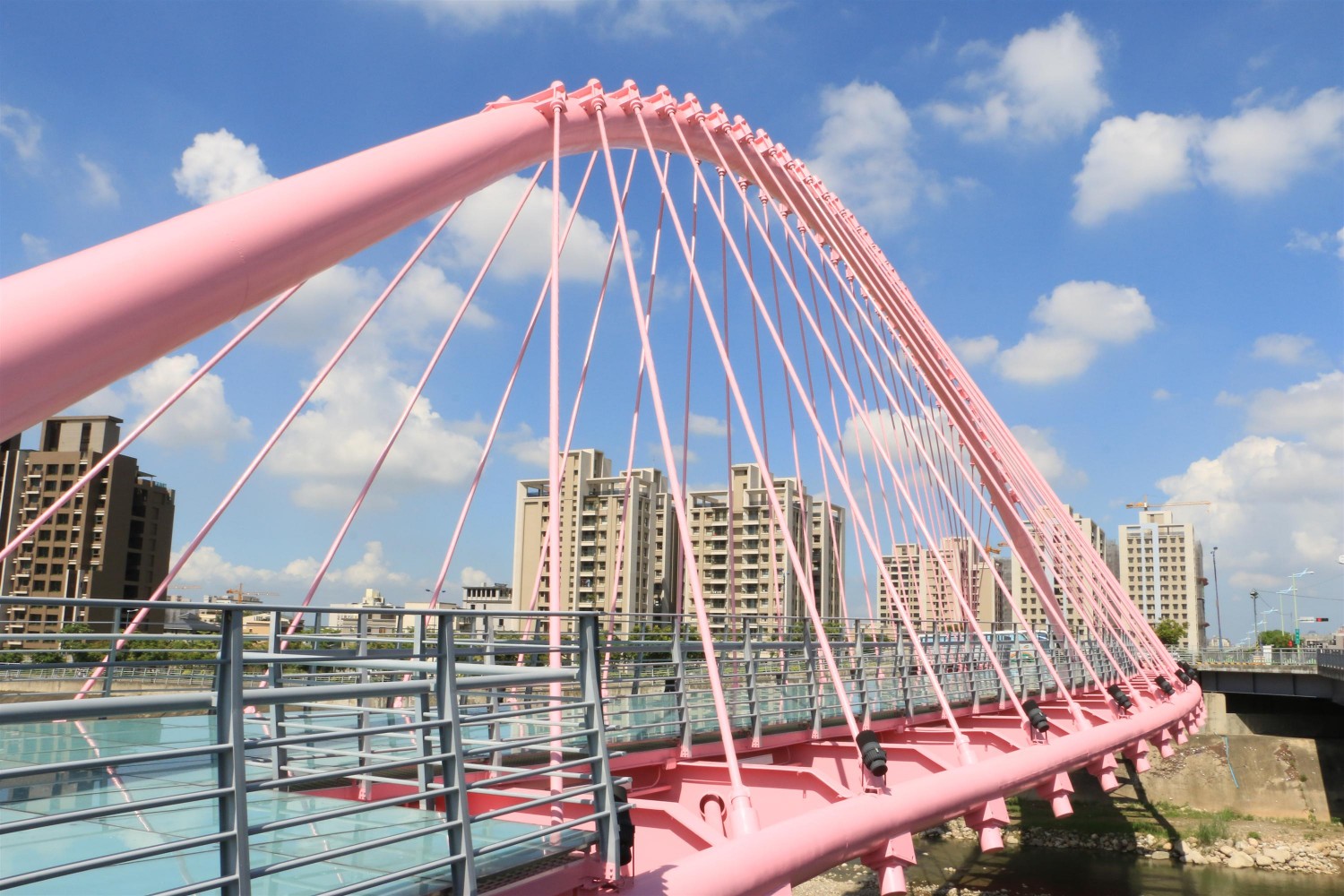 ▼1.大坑情人橋:它位於台中市北屯區祥順東路一段與景賢路交叉路口。這個整體粉紅色的橋是台中大坑一帶的新景點。橋面是玻璃材質打造,配合甜美的色調,看起來浪漫又夢幻。